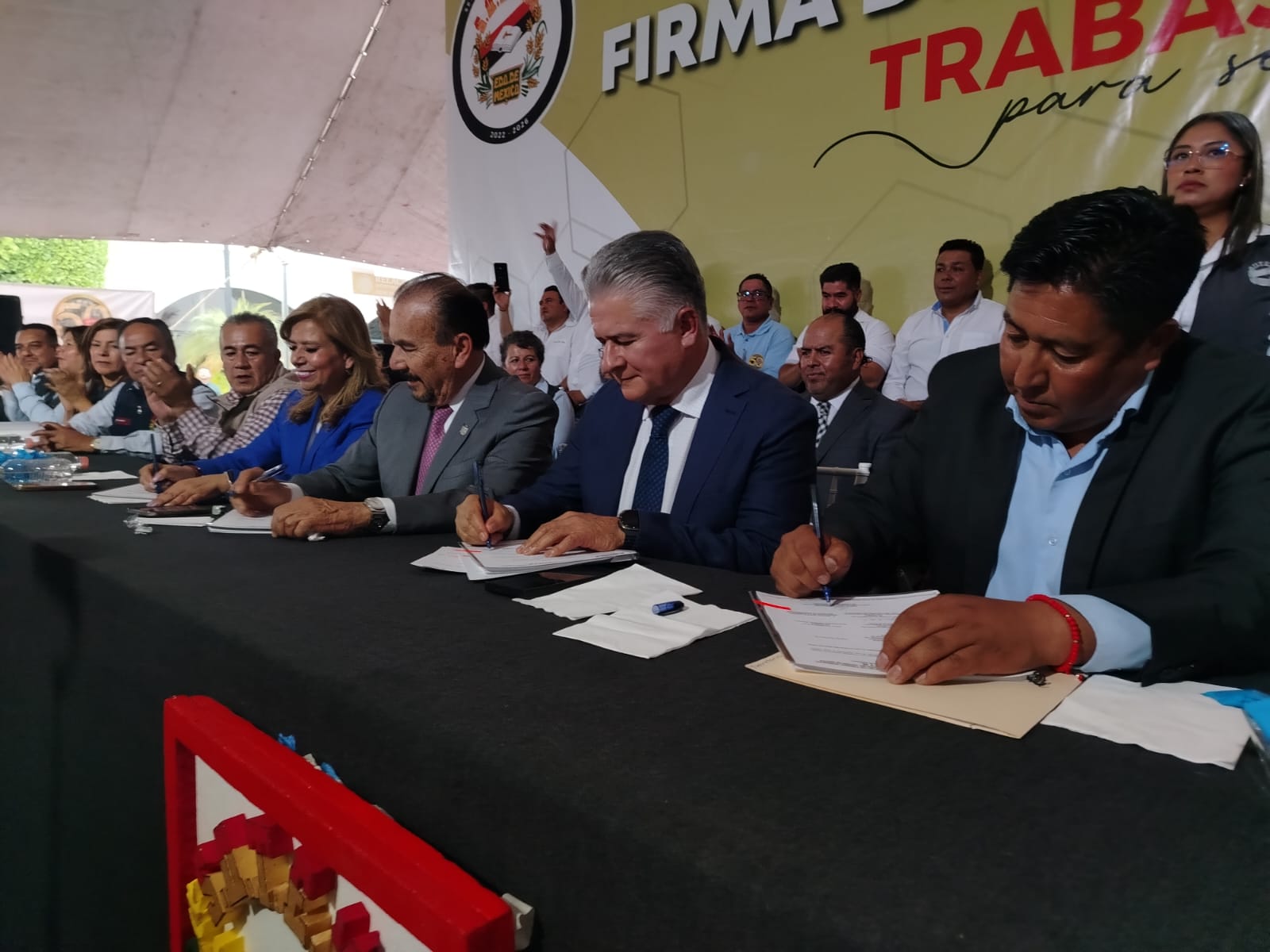 Cahue, subrayó que la firma del convenio “nos compromete a todas y a todos a darnos nuestro mejor esfuerzo, para que el presidente siga cumpliendo con los compromisos que tiene con la ciudadanía”.