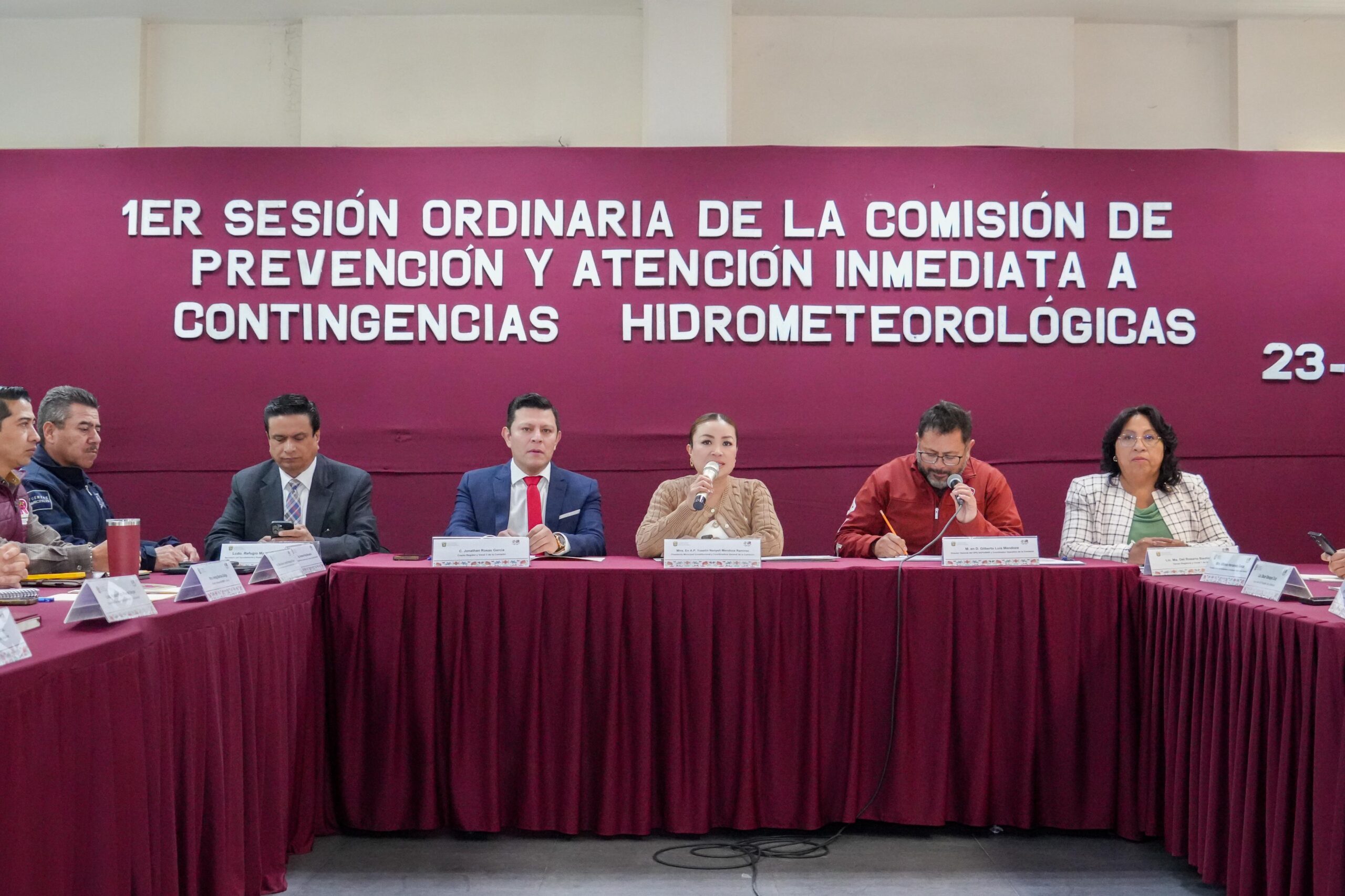 Al encabezar la Primera Sesión Ordinaria de la Comisión de Prevención y Atención Inmediata a Contingencias Hidrometeorológicas, la alcaldesa, Yoselin Mendoza, refrendó su compromiso de no esperar a que se registren emergencias por fuertes lluvias, para realizar acciones preventivas que contribuyan a salvaguardar la integridad y los bienes de la población.