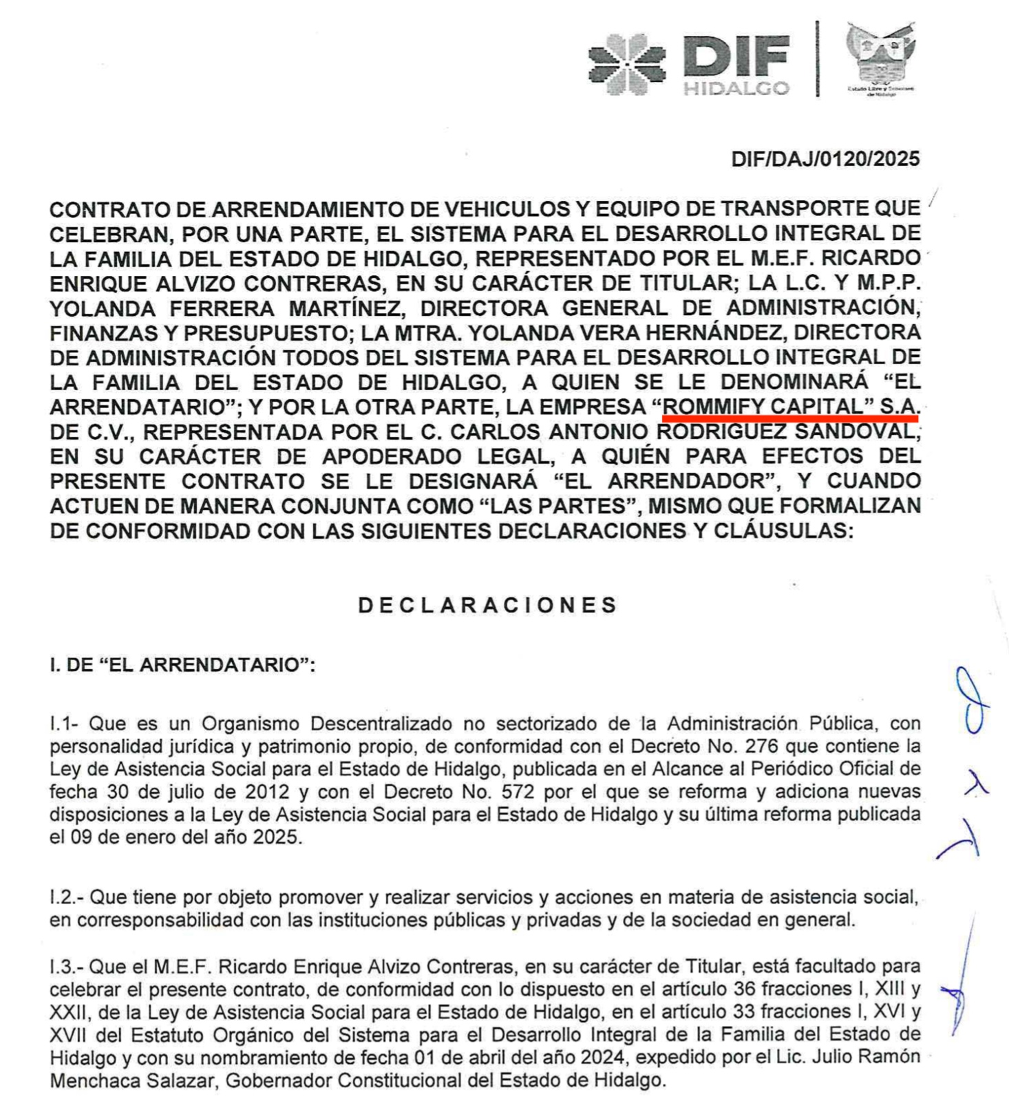 Recientemente firmó el contrato PMMR-SA-026-FORTAMUN-2025, 2 de julio de 2025, para el arrendamiento de patrullas en el municipio de Mineral de la Reforma por un monto de $13,777,737.60 pesos; en el DIF Estatal obtuvo el contrato DIF/DAJ/0120/2025, enero de 2025, para el arrendamiento de vehículos y equipo de transporte 2025-2026 por un monto de $26,352,339.78 pesos; el contrato 034/2025, del 7 de abril 2025, para el arrendamiento 58 camionetas pick up, modelo 2025, por un monto de $23,100,184.32 pesos; el contrato 033/2025, firmado el mismo 7 de abril para el arrendamiento de vehículos por un monto de $12,550,692.38 pesos.