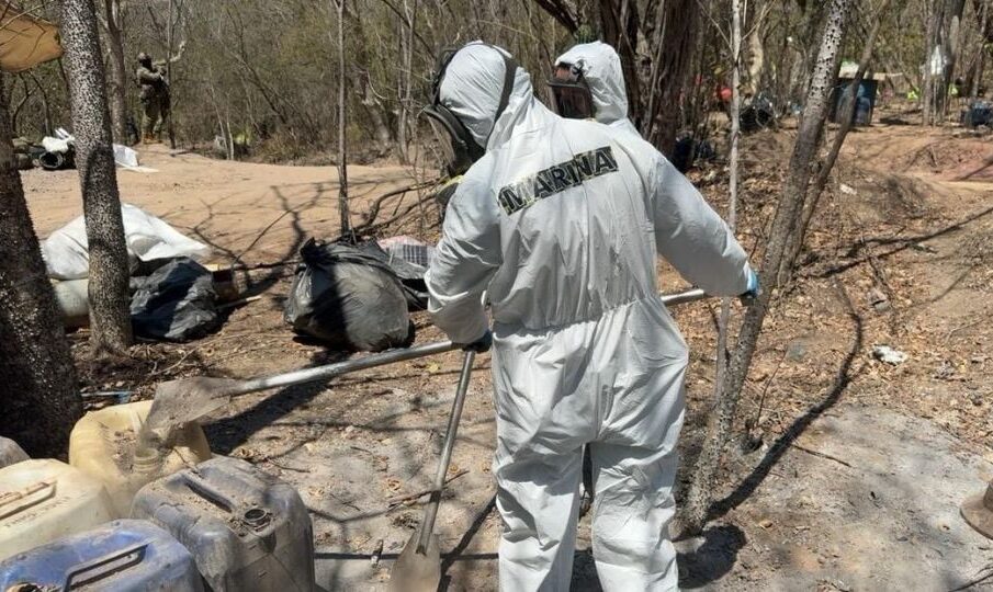 La Secretaría de Marina informó que fue desmantelado un laboratorio clandestino donde se producía metanfetamina en la localidad de Las Juntas, en Mocorito, Sinaloa.