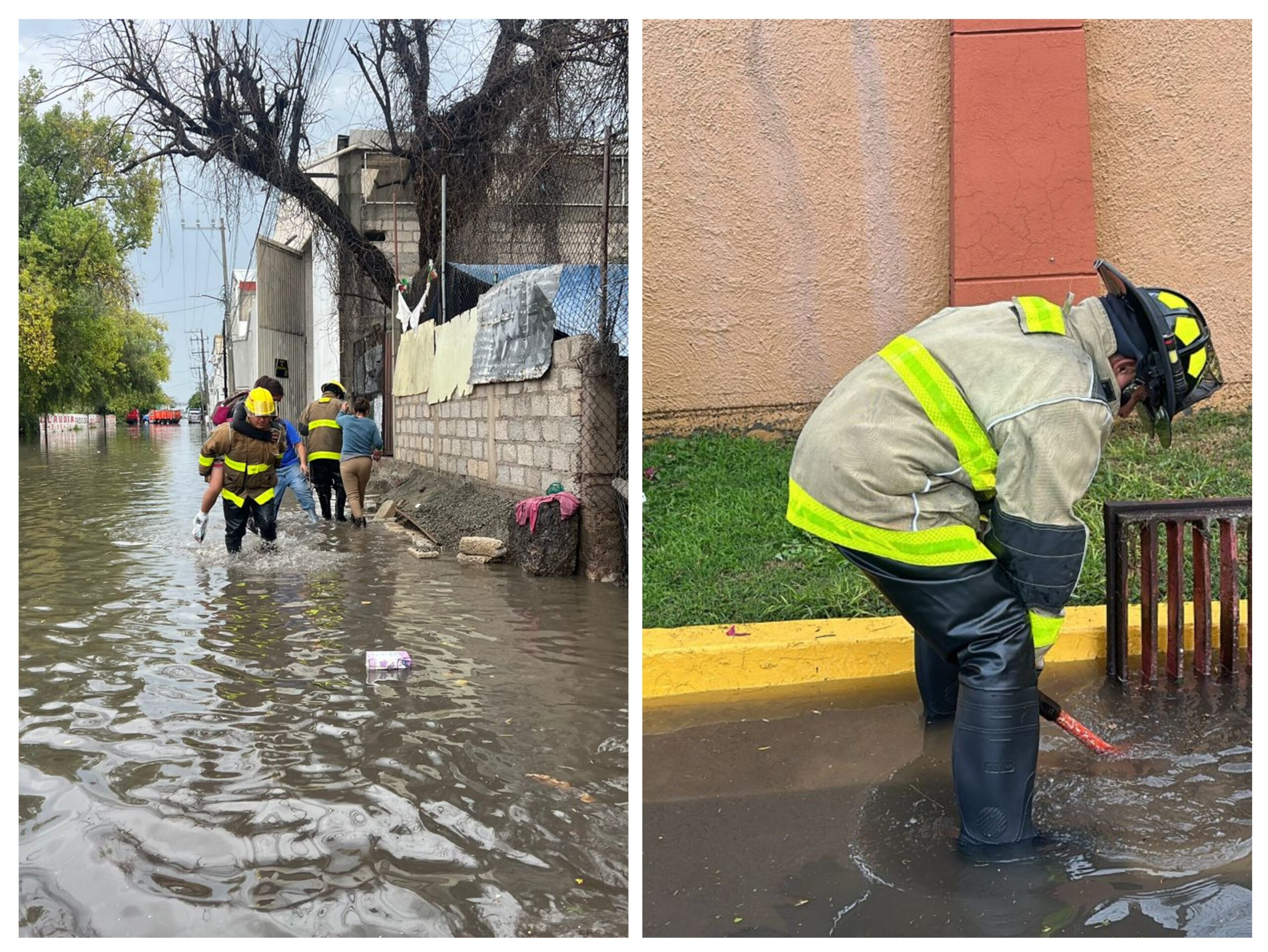 Personal de Protección Cvil y Bomberos de Tecámac atendieron con prontitud las afectaciones provocadas por la intensa lluvia que se registró la tarde de este domingo en varias zonas del municipio y que ocasionaron el desbordamiento del canal de Golondrinas.