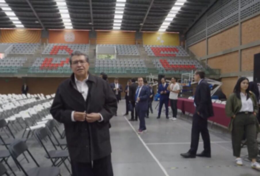 Ricardo Monreal mostró cómo la Sala de Armas de la Ciudad Deportiva Magdalena Mixhuca fue adaptada para convertirse en el salón de plenos en el que sostendrán la discusión de la reforma judicial, una de las principales iniciativas de presidente López Obrador.