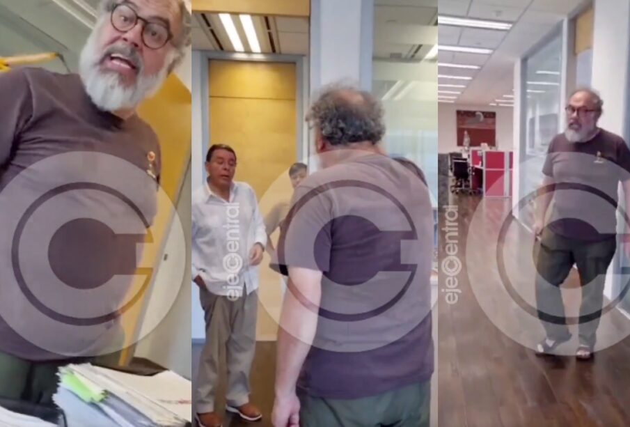 En las imágenes, compartidas por ejecentral, se muestra a Michel Díaz lanzando groserías al personal y desafiando a Isidro Rodríguez, con quien tuvo un altercado verbal.