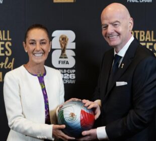 Claudia Sheinbaum asiste al sorteo del Mundial 2026, saca la pelotita de México