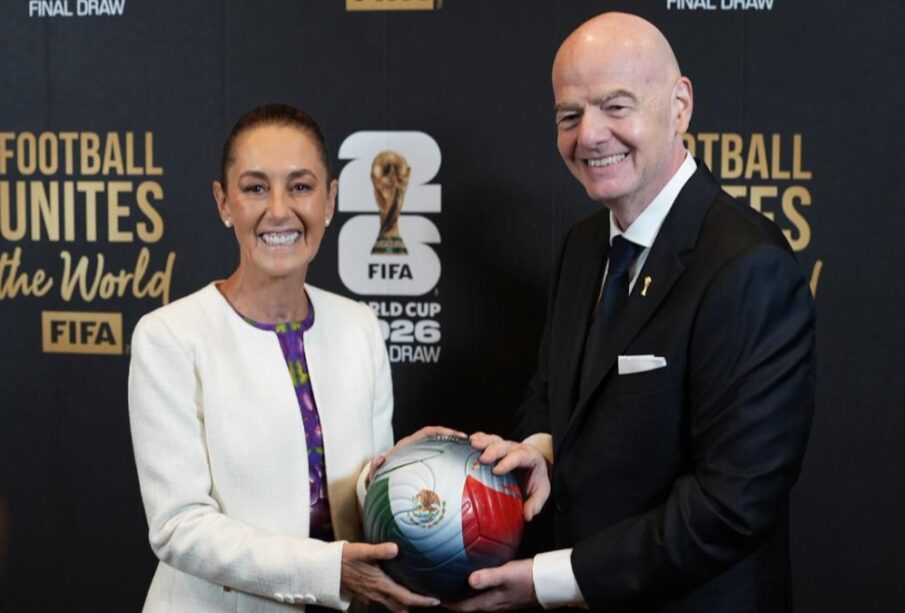 Claudia Sheinbaum asiste al sorteo del Mundial 2026, saca la pelotita de México