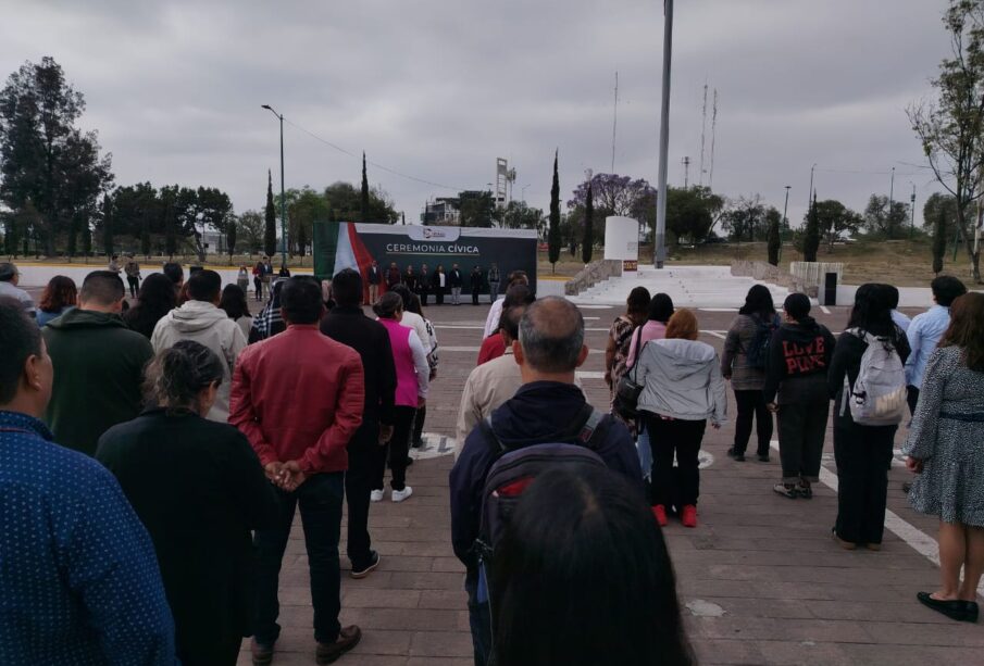 Posteriormente al encuentro con periodistas, el Presidente municipal; su equipo de trabajo y empleados de su administración rindieron honores al Lábaro Patrio en la explanada frente al palacio de Gobierno de Cuautitlán Izcalli.