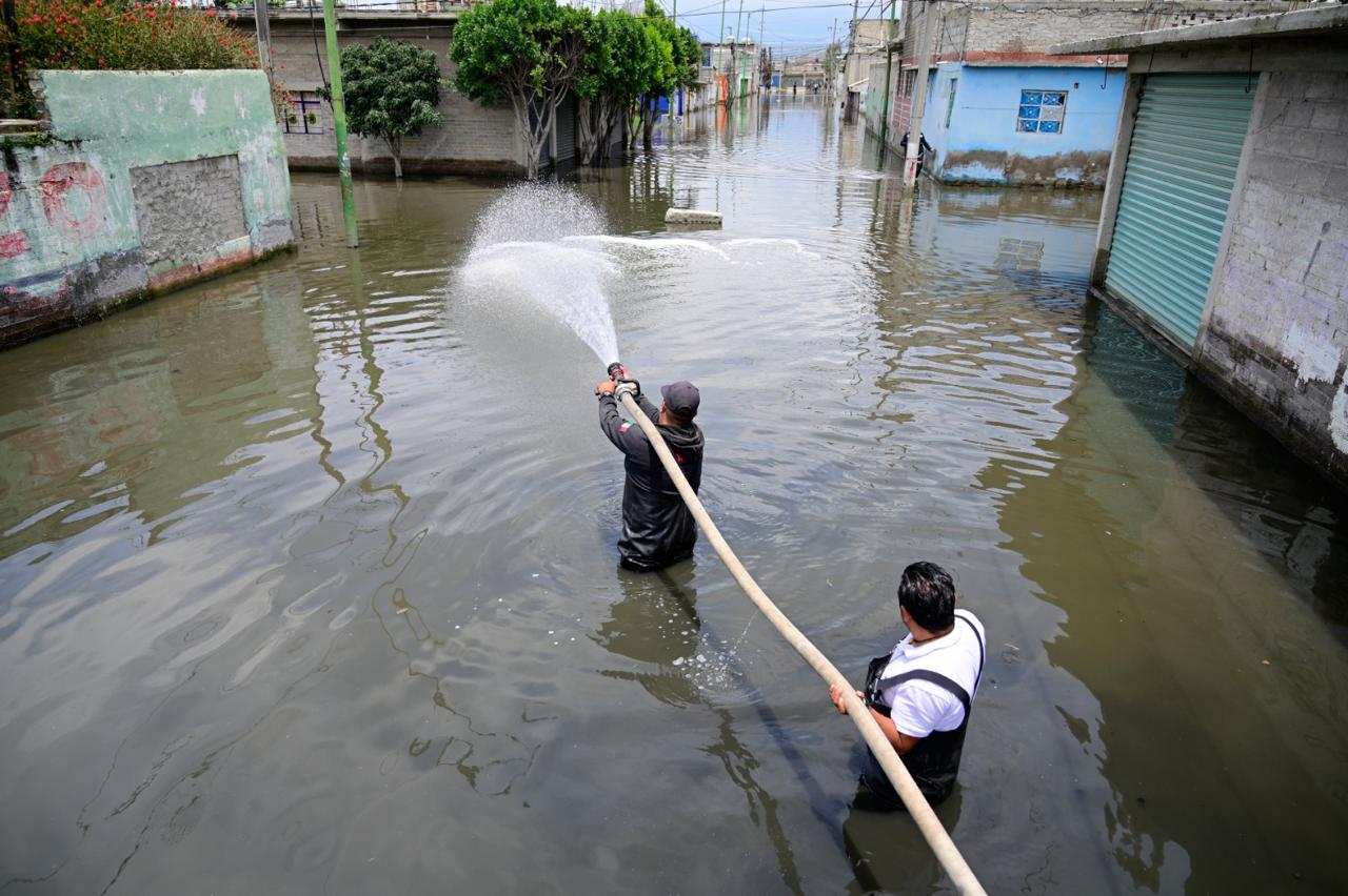 La gobernadora Delfina Gómez publicó en su cuenta de X que se trabaja para retornar a la normalidad con el apoyo de la Marina, Sedena, Salud y Conagua, con desazolve, atención médica, alimentos y refugios temporales.