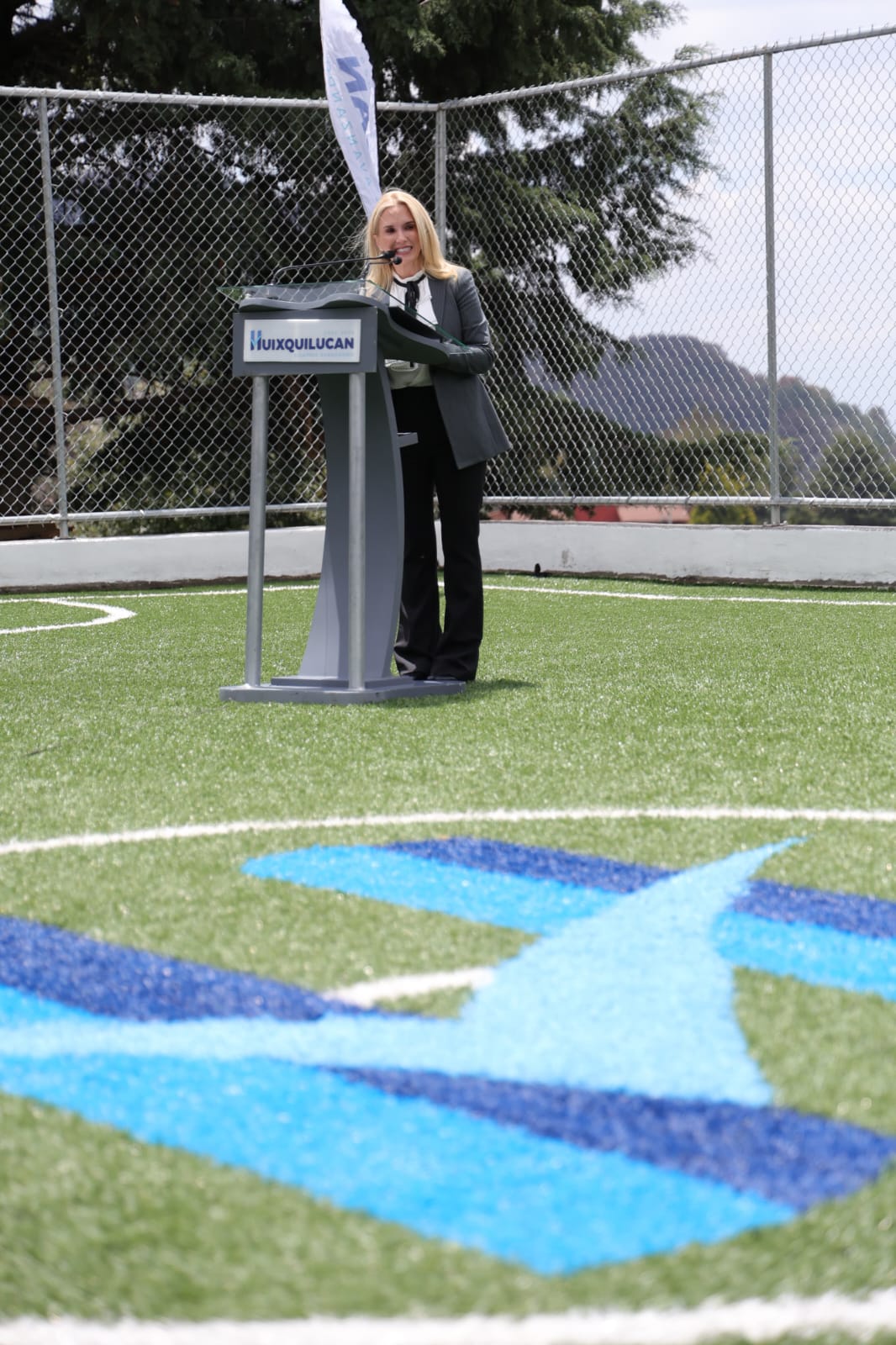 En presencia de alumnos, padres de familia y docentes, la directora general de Infraestructura y Edificación de Huixquilucan, Jessica Nabil Castillo Martínez, explicó que, además de la construcción de la cancha de futbol rápido de un área de 472.50 metros cuadrados, a la cual se le colocó pasto sintético, se realizó la estabilización del talud y se hizo un muro de contención, con el fin de garantizar la seguridad de la comunidad estudiantil.