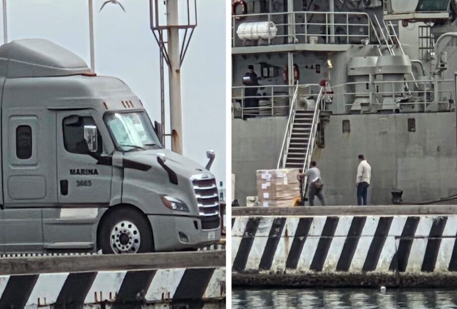 De acuerdo con lo observado en el recinto portuario, camiones y tráileres de la Marina arribaron con insumos humanitarios debidamente embalados y listos para su transportación.