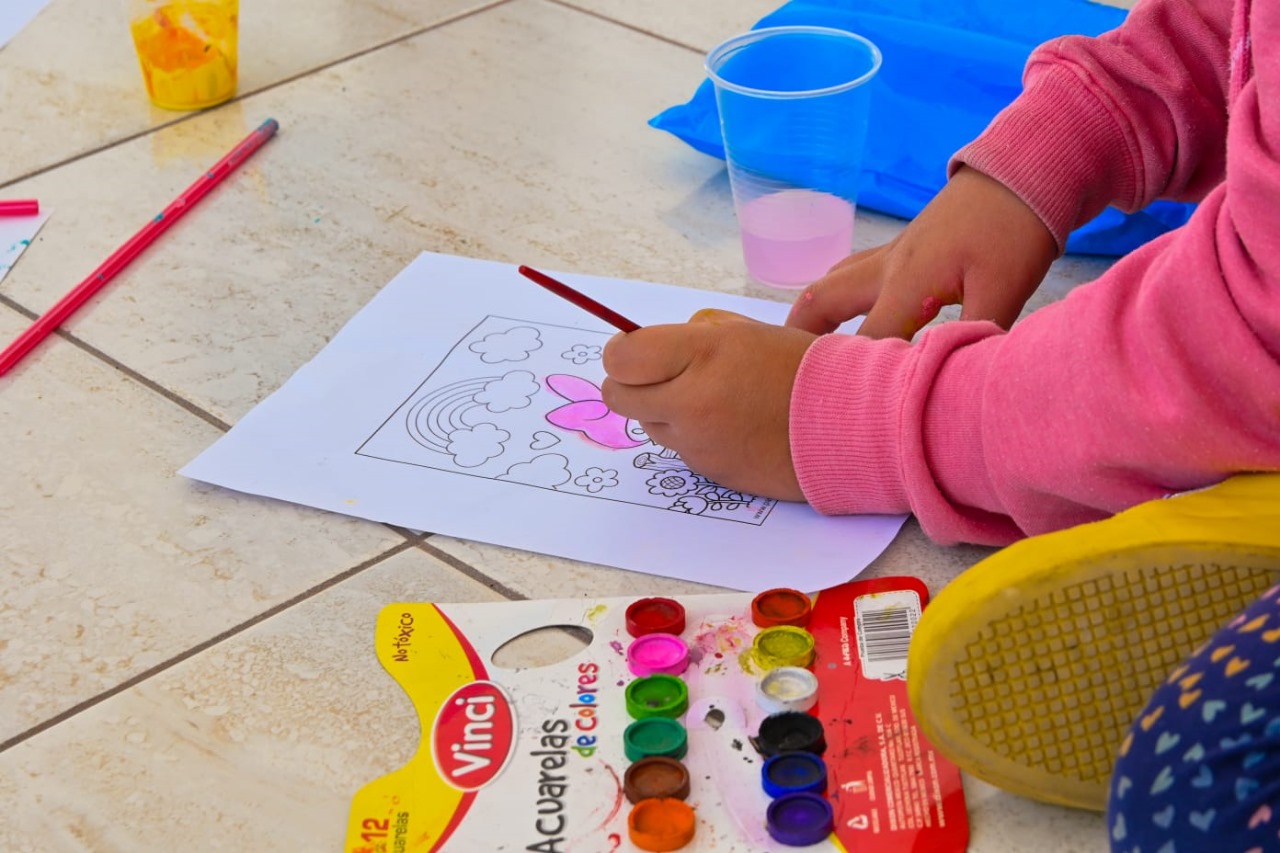 Los pequeños, se divierten pintando con popote, al igual que con sensoramas que estimulan sentidos como el olfato y el tacto, además de otras actividades que contribuyen a mejorar su motricidad, memoria y atención.