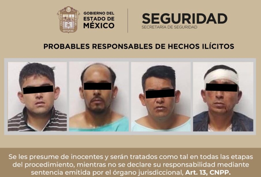 Luego de ser plenamente identificados por la víctima, detuvieron a Diego “N” de 28 años; Luis Alberto “N” de 25 años; Moisés “N” de 32 años; Edgar “N” de 39 años y José Antonio “N” de 46 años. Datos preliminares señalan que podrían dedicarse a la extorsión en los municipios de Naucalpan y Huixquilucan, por lo que se extenderán las indagatorias.