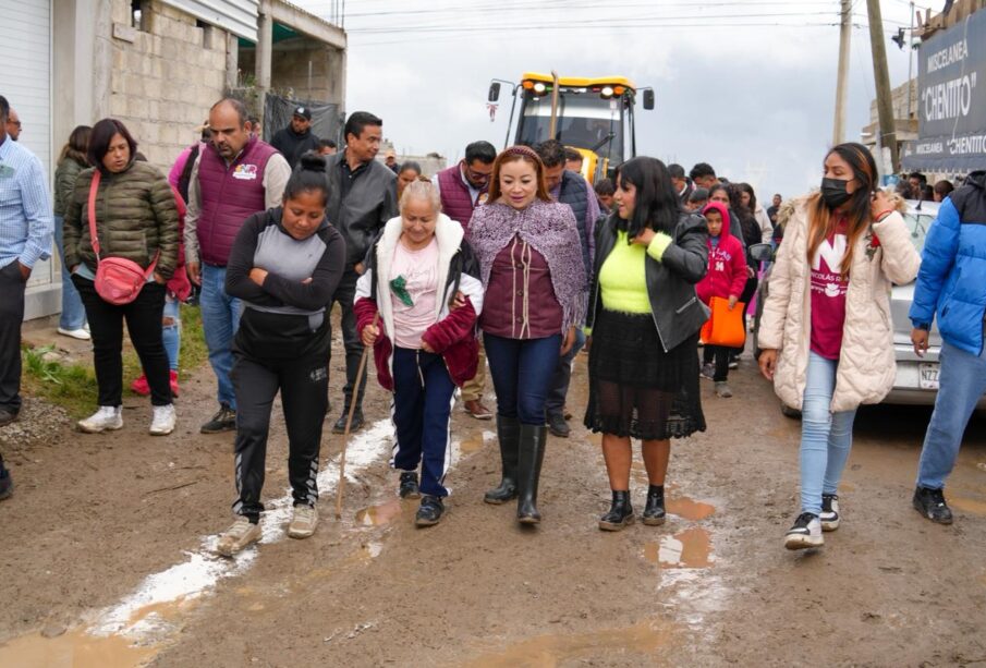 Ante líderes vecinales, habitantes de ese lugar y servidores públicos, la presidenta municipal refrendó su compromiso con las y los nicolasromerenses, particularmente con quienes viven en sitios como este, donde hace mucha falta mejorar las condiciones de las vialidades.