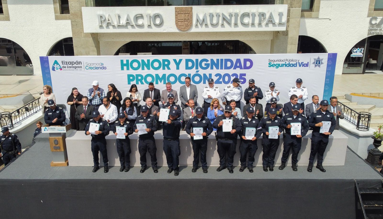 En una emotiva ceremonia realizada en la explanada municipal, el Gobierno de Atizapán de Zaragoza, encabezado por el presidente Municipal, Pedro Rodríguez Villegas, acompañado de su esposa la presidenta honoraria del DIF, Paty Arévalo, llevaron a cabo la entrega de grados “Honor y Dignidad. Promoción 2025”, reafirmando su compromiso con la dignificación y profesionalización de la Policía Municipal en beneficio de las familias atizapenses.