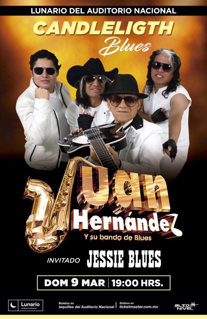 Juan Hernández, reconocido guitarrista y cantante mexicano, se prepara para llevar su espectáculo Candlelight Blues en el emblemático LUNARIO DEL AUDITORIO NACIONAL. El evento se llevará a cabo el domingo 09 de Marzo a las siete de la tarde, prometiendo una noche llena de resistencia, identidad y rebeldía. Boletos a la venta en el Sistema Ticketmaster y en taquillas del inmueble. Jessie Blues será el invitado de lujo para este evento.