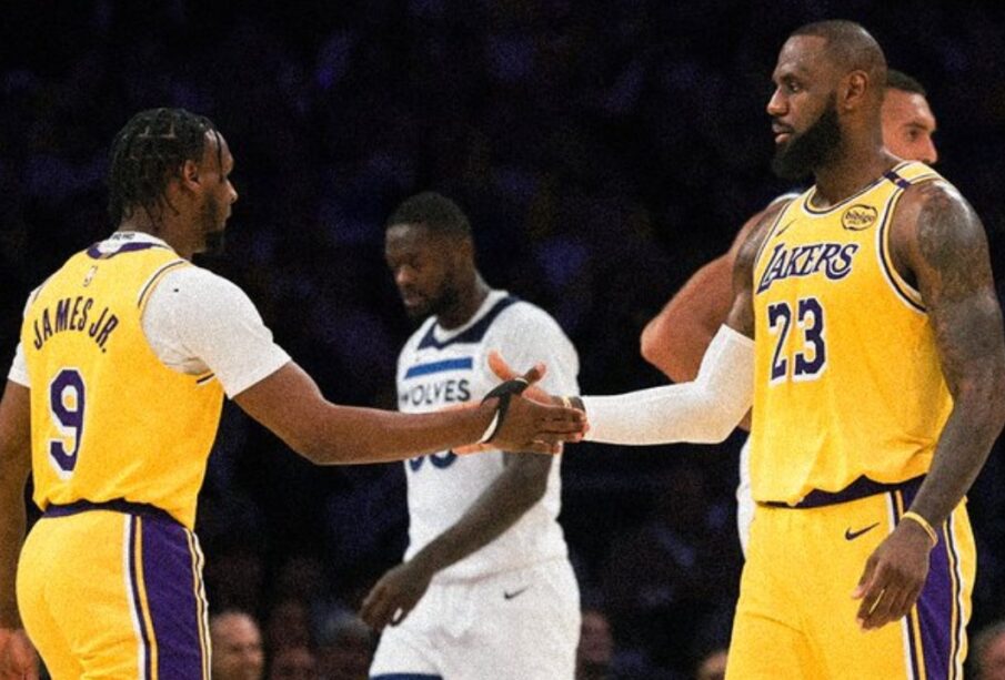 James salió como titular y, tras uno de sus descansos en el banco, el técnico JJ Redick lo mandó de vuelta a la cancha junto a Bronny, dejando una imagen para la historia de la liga norteamericana de básquet.
