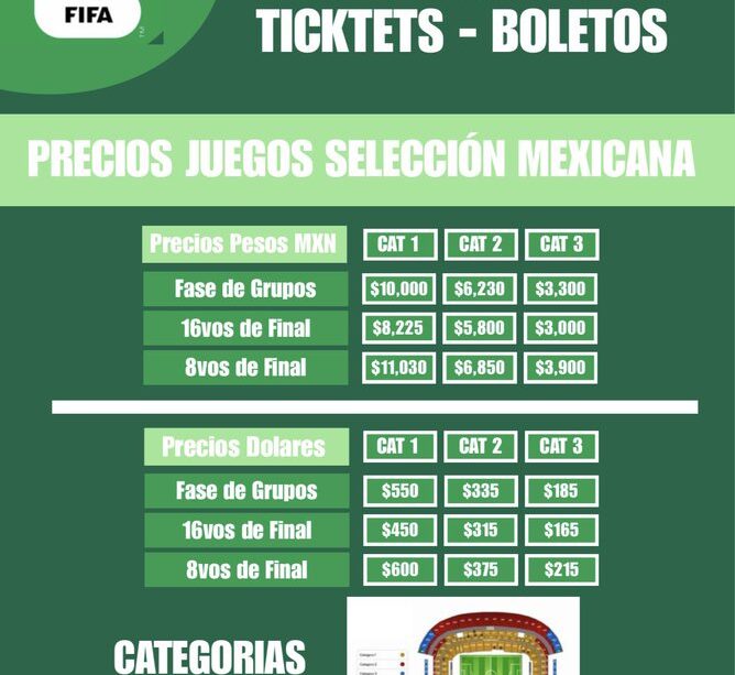 Los precios de los boletos para el Mundial 2026 fueron divididos en tres secciones (categoría 1, 2 y 3). Además, el costo de los tickets también fue mostrado según el partido, si este es para Fase de Grupos, para 16vos. de final u 8vos. de final. Aquí el desglose completo: