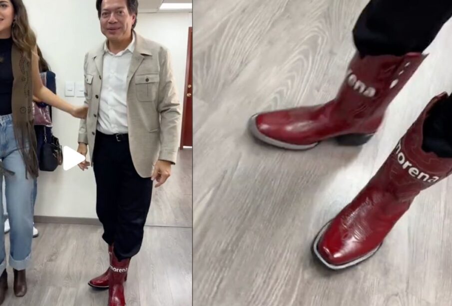 Mario Delgado, líder nacional de Morena, ha generado miles de reacciones en TikTok tras compartir un video donde presume sus nuevas botas vaqueras en color guinda, adornadas con el logotipo del partido.