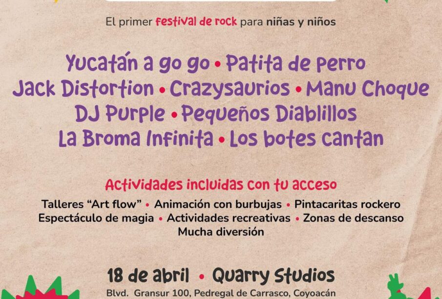 En una ciudad donde los grandes festivales suelen estar pensados para adultos, Mini Rock Fest llega como una sacudida necesaria. No es solo otro evento en la agenda cultural, es una declaración de principios: poner a la niñez en el centro, darle un espacio propio y reconocer que también tienen derecho a vivir la música con la misma intensidad, emoción y libertad que cualquier adulto. Esto con la presencia de Yucatán a Gogo, Patita de Perro, Jack Distortion, Crazysaurios, Manu Choque, DJ Purple, Pequeños Diabillos, la Broma infinita y Los Botes Cantan bajo el auspicio de Alpura Vaquitas, esta primera edición se perfila como un parteaguas en la manera de entender el entretenimiento familiar en México. Boletos a la venta en el Sistema Passline.