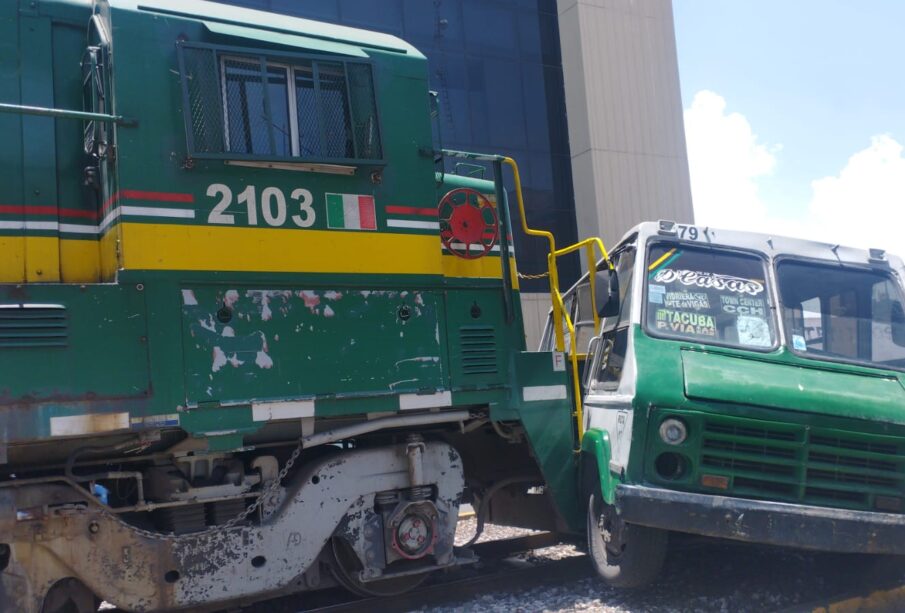 Cámaras de la infraestructura del C4 Municipal de Tlalnepantla pertenecientes a la Comisaría de Seguridad Pública, captan el momento exacto en que un chófer de trasporte público de pasajeros intenta ganarle el paso al tren y es impactado por la locomotora.