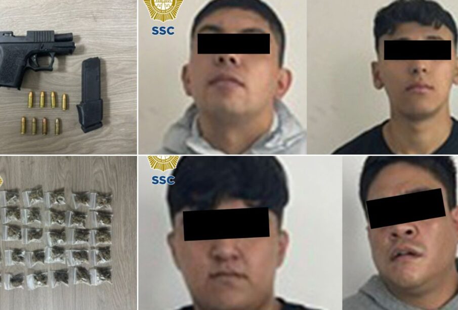 Cinco hombres que portaban un arma de fuego y varias dosis de droga fueron detenidos en inmediaciones de la colonia Agrícola Oriental, en la alcaldía Iztacalco, por elementos de la Secretaría de Seguridad Ciudadana (SSC) de la Ciudad de México tras una persecución.