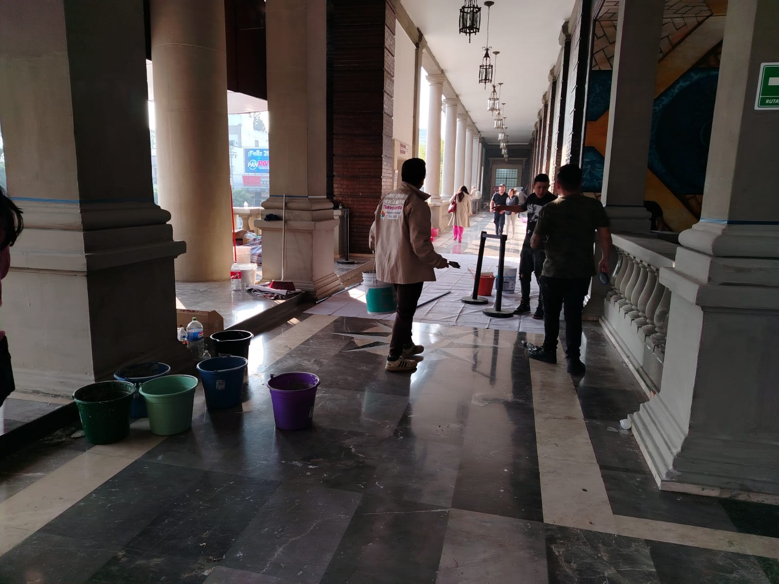 El edil trata de impresionar a la mandataria nacional, con trabajos de embellecimiento del palacio municipal de la llamada tierra de enmedio, haciendo colocar toda clase de detalles estéticos y ornamentales en el edificio de gobierno.