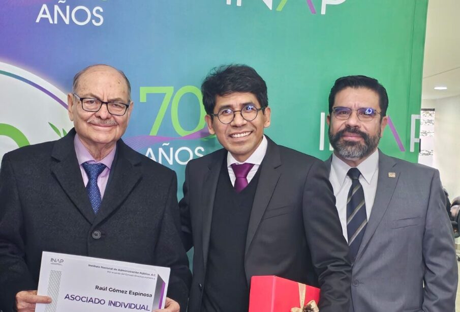 Entrega del reconocimiento a Raúl Gómez Espinosa como nuevo miembro de número del Instituto Nacional de Administración Pública (INAP). Actualmente Gómez Espinosa es director general de la revista Proyección Económica.