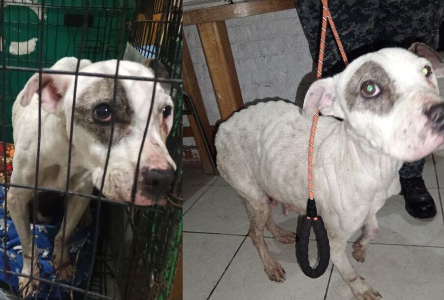 Los oficiales especializados de la Brigada de Vigilancia Animal diagnosticaron a la perrita, de talla mediana y color blanco, con desnutrición. Aunque no presentaba lesiones físicas, el lomito estaba amamantando a dos cachorritas de color blanco con negro.