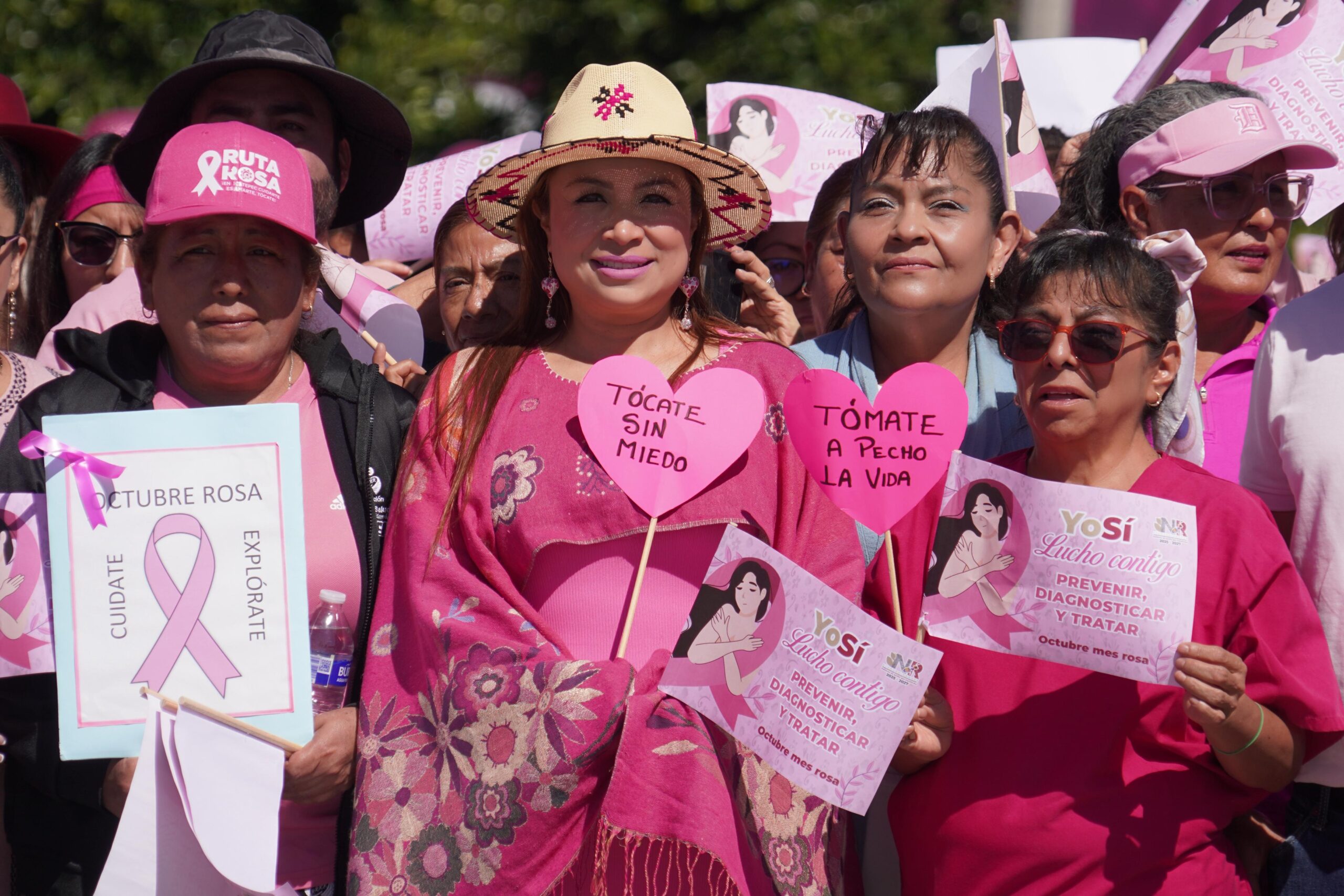 Porque la salud es un derecho, no un privilegio, y para hacer conciencia en la población sobre la importancia de la prevención y/o detección oportuna del cáncer de mama, la alcaldesa, Yoselin Mendoza, encabezó la caminata rosa “Yo sí lucho contigo”.