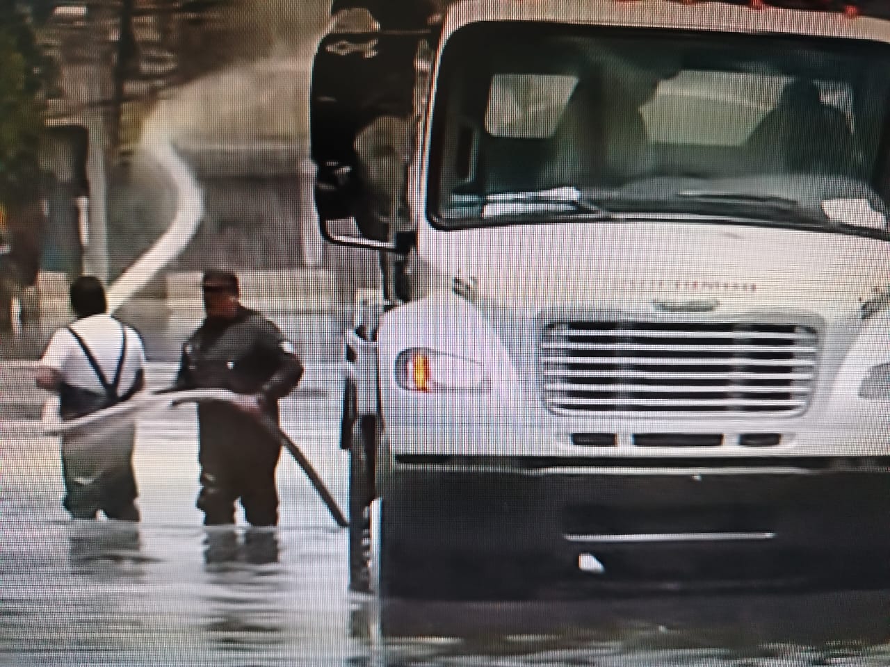 La autoridad empezó a echar agua y fumigar para eliminar los moscos, mientras tratan de destapar un tapón ocasionado por la falta de mantenimiento al sistema de drenaje, el mal estado de las tuberías y la basura acumulada.